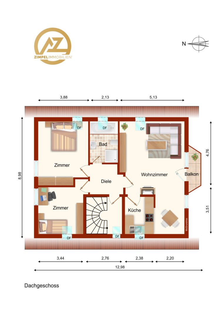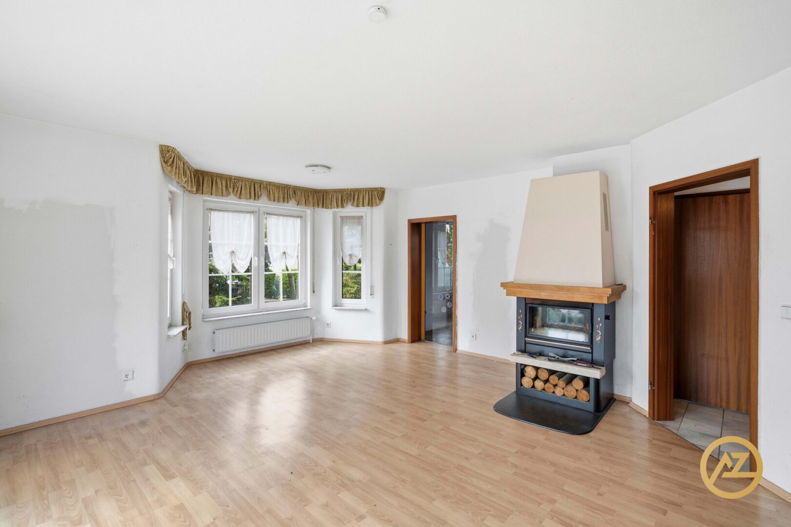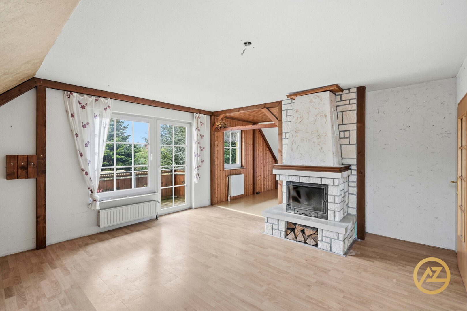 Im Obergeschoss stehen zwei weitere Schlafzimmer, eine offene Wohnküche ebenfalls mit Kamin sowie ein Balkon zur Verfügung. Durch die Aufteilung beider Etagen ergeben sich gute Voraussetzungen für eine separate Nutzung, etwa für zwei Generationen unter einem Dach oder für Wohnen und Arbeiten.